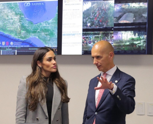 Guerrero Chiprés explicó la operación del número de emergencia 911, el 089 para denuncias anónimas y la Línea SOS Mujeres *765, así como el monitoreo de las más de 80 mil cámaras de videovigilancia en la Ciudad.