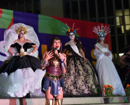 - Encabezó Desfile de Catrinas en la explanada de la alcaldía; estuvo acompañada por Ana Francis Mor.