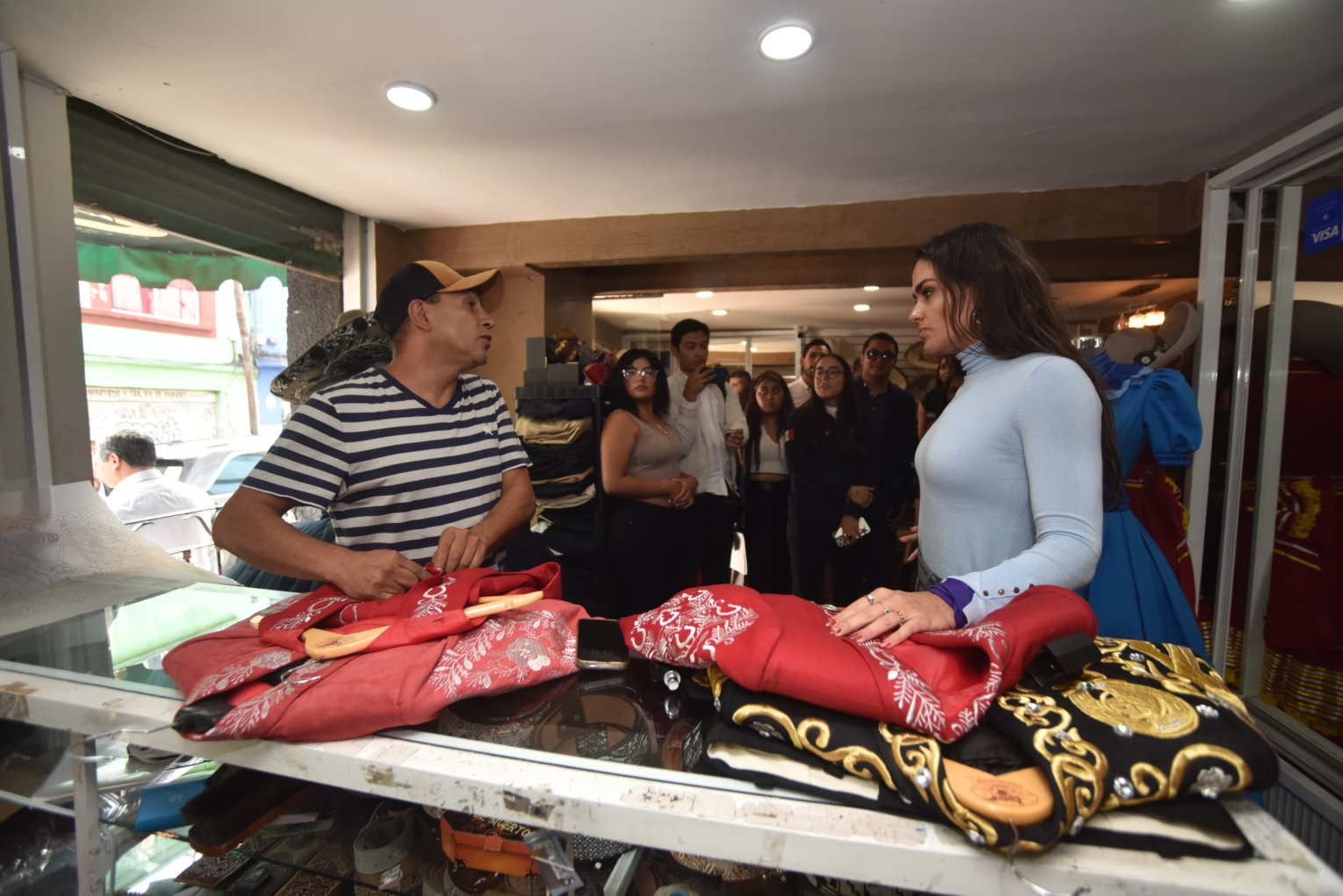En el marco de la inauguración del 1er Congreso Mundial del Mariachi, que se llevará a cabo del 6 al 10 de noviembre, la alcaldesa de Cuauhtémoc, Alessandra Rojo de la Vega Piccolo realizó un recorrido por la Calle Ecuador, en el Centro Histórico, popularmente conocida como ‘Calle de la Charrería’, en el que dialogó con artesanas y artesanos que confeccionan los icónicos trajes de charro, con el objetivo de conocer de primera mano su trabajo, potencializarlo e invitarlos a formar parte del congreso.