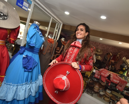 Como parte de este recorrido, la alcaldesa visitó la Sastrería ‘Escaramusa’, donde se probó el traje de charro que usará durante el Congreso del Mariachi, a inaugurarse el próximo miércoles y que, para el cierre, buscará batir el Récord Guinness de más mariachis cantando de manera simultánea.