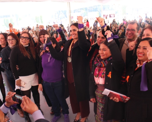 - Siete de cada diez locatarios de los mercados son mujeres “que a diario enfrentan la violencia que hoy estamos visibilizando”, afirma la alcaldesa.