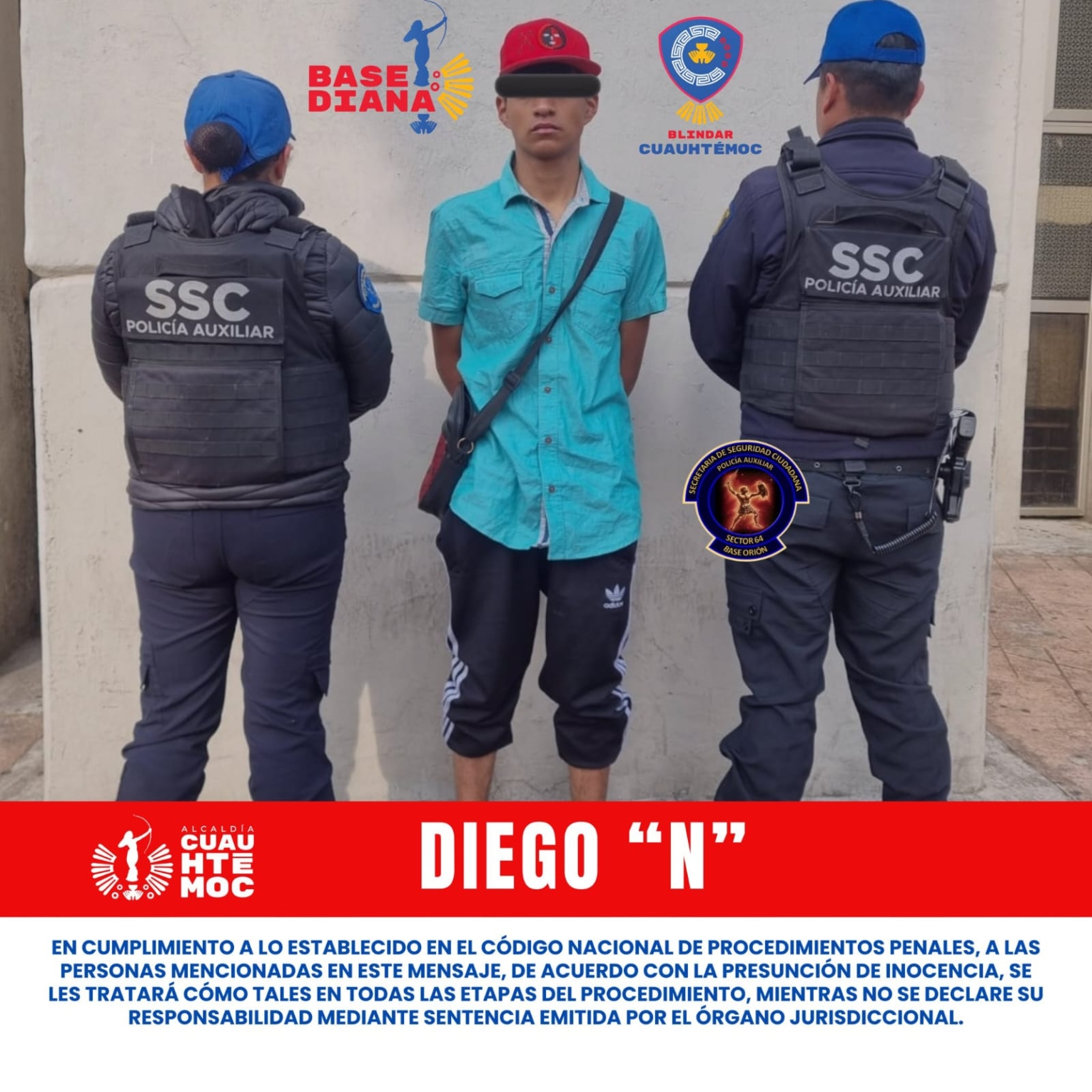 Agentes de la Policía Auxiliar (PA) de la Alcaldía Cuauhtémoc lograron la detención de Diego ‘N’, de 18 años, señalado por su presunta participación en el robo de una bicicleta eléctrica, en agravio de un ciudadano de nacionalidad española, en la colonia Juárez.