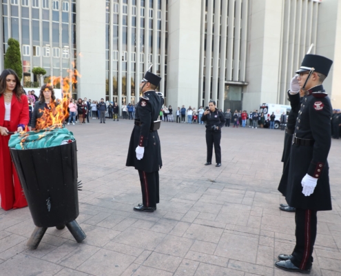 En la ceremonia se llevaron a cabo los honores correspondientes y la incineración de una bandera, en un acto solemne que reafirma el respeto y la identidad nacional de la administración pública de la Alcaldía Cuauhtémoc. El acto contó con la presencia de elementos de la Policía Auxiliar y de Protección Civil, adscritos a la Dirección General de Seguridad Ciudadana y Protección Civil; además de trabajadores de diferentes áreas de la administración, así como estudiantes de la Academia Militarizada Ollin Cuauhtémoc y la Secundaria General No. 2 “Ana María Berlanga”.