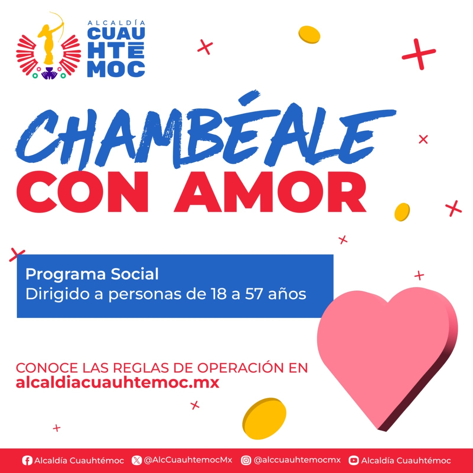 El Gobierno de la Alcaldía Cuauhtémoc publicó las reglas de operación del programa social ‘Chambeále con Amor’, una iniciativa diseñada para apoyar a personas en situación de vulnerabilidad económica. Con una inversión de 2 millones de pesos para el ejercicio fiscal 2025, el programa busca beneficiar a 400 personas mediante un apoyo monetario que les ayude a cubrir necesidades básicas.