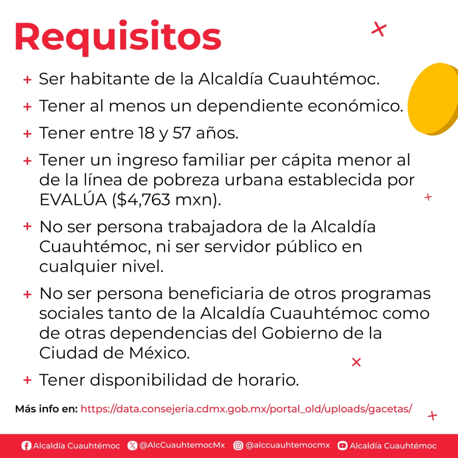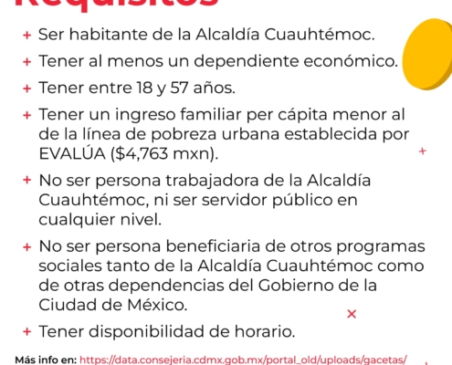 • Ser residente de la Alcaldía Cuauhtémoc.