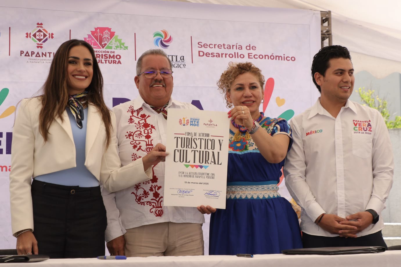 “Hoy no solo firmamos un convenio, hoy sellamos un compromiso con nuestra gente. Queremos que la esencia de Papantla se sienta en Cuauhtémoc y que el corazón de la capital también brille en Veracruz. Más allá del turismo, esta alianza es una puerta para el crecimiento económico de nuestras comunidades”, destacó Ale Rojo de la Vega.