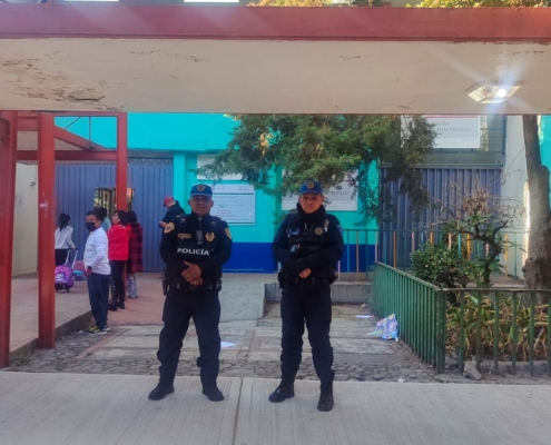 Para reforzar la seguridad en el entorno escolar, la Policía Auxiliar de Cuauhtémoc mantiene presencia en cinco instituciones educativas de la unidad habitacional, brindando vigilancia en horarios de entrada y salida de estudiantes. Asimismo, se llevó a cabo un apercibimiento a un establecimiento que operaba como chelería en la Primera Sección, atendiendo reportes ciudadanos.