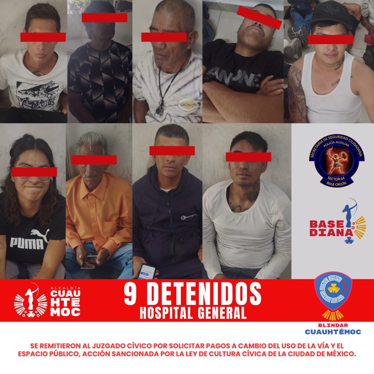 En un operativo instruido por la alcaldesa Alessandra Rojo de la Vega e implementado en la colonia Doctores, la Policía Auxiliar de la Alcaldía Cuauhtémoc remitió a nueve personas al Juzgado Cívico por apartar lugares en la vía pública y cobrarlos como estacionamiento, además de retirar de enseres utilizados para este fin y remitir ocho motocicletas al corralón.
