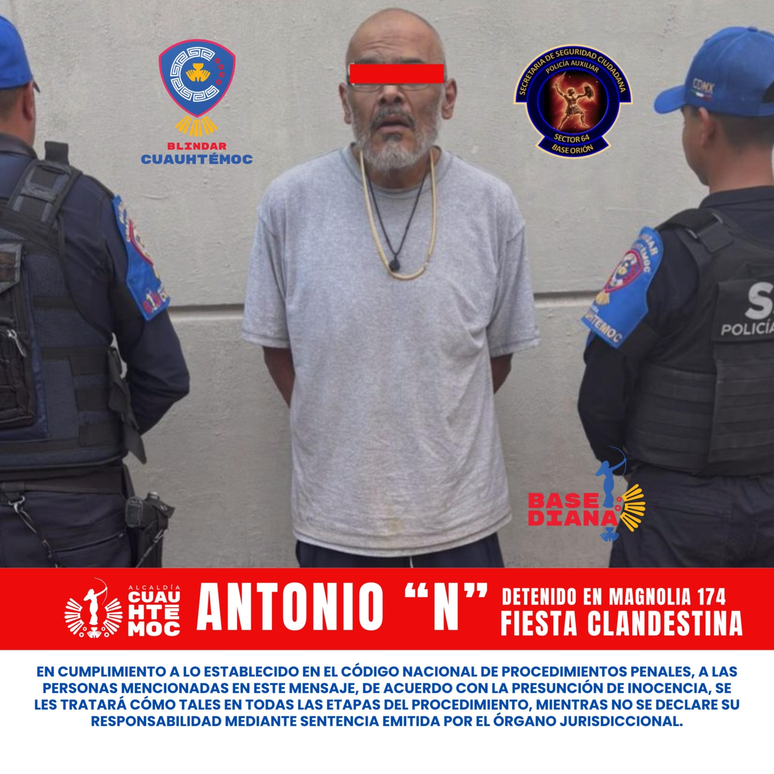 Como parte del operativo implementado por la Dirección General de Gobierno, la Dirección General de Seguridad Ciudadana y Protección Civil de la Alcaldía Cuauhtémoc, tras el desalojo de una fiesta clandestina en la colonia Morelos donde se encontraban más de 800 jóvenes —la mayoría menores de edad— se informa lo siguiente: