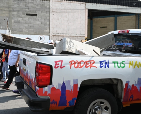 En materia de espacio público, se liberaron 12 kilómetros de banquetas y vialidades ocupadas por objetos abandonados, se retiraron seis casetas telefónicas y se recolectó media tonelada de mostrencos.
