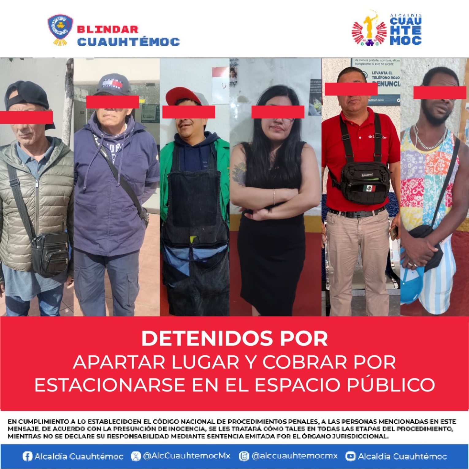 En una primera acción, se remitió al Juzgado Cívico a seis personas por apartar espacios y cobrar por el uso de la vía pública en las colonias Doctores, Santa María la Ribera, Roma Norte e Hipódromo Condesa. La remisión ocurrió tras recorridos de supervisión y en atención a denuncias ciudadanas.