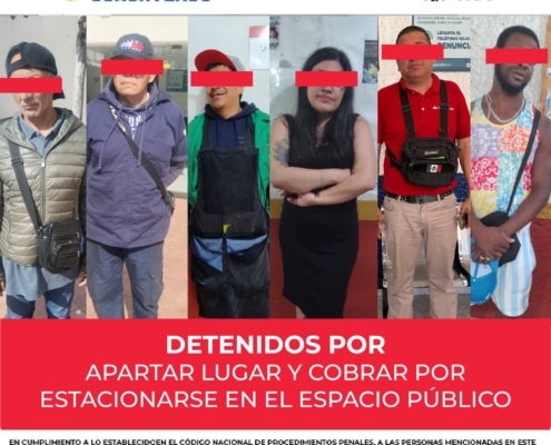 - Además, la Policía Auxiliar remitió a seis personas al Juzgado Cívico por apartar espacios y cobrar por estacionamiento.