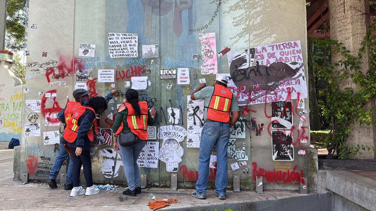 Desde la noche del viernes y durante la mañana del sábado, cuadrillas de Servicios Urbanos, Gobierno y Participación Ciudadana (territoriales) intervinieron en la zona para realizar limpieza, retiro de residuos y remoción de pintas. Personal de Vía Pública apoyó a locatarios a cubrir los cristales rotos y evitar mayores riesgos. La Dirección General de Cultura en coordinación con el INBAL trabajó en la remoción de adhesivos pegados sobre equipamiento urbano y fachadas.