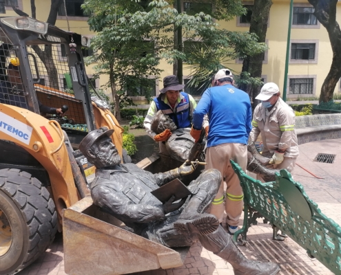 Ante estos antecedentes y con base en las atribuciones que establece la normatividad local, la Alcaldía Cuauhtémoc determinó su retiro y resguardo, al tiempo que se iniciará un proceso de catalogación para definir su destino final conforme a los protocolos aplicables.