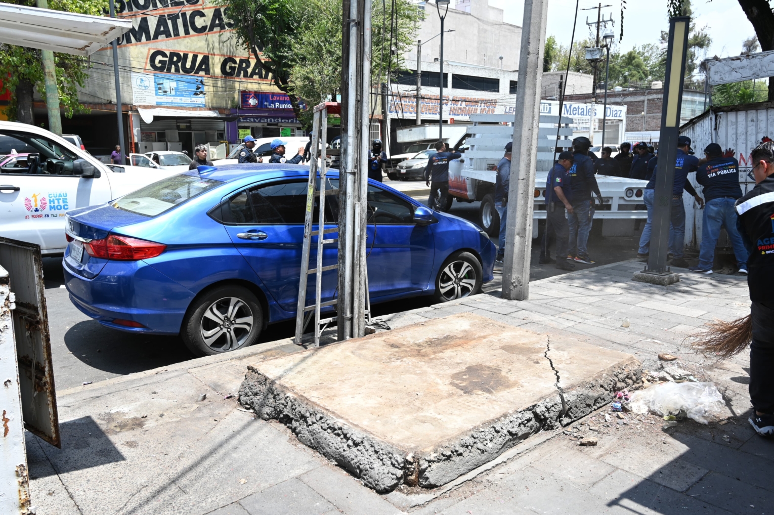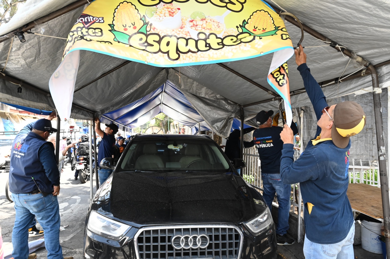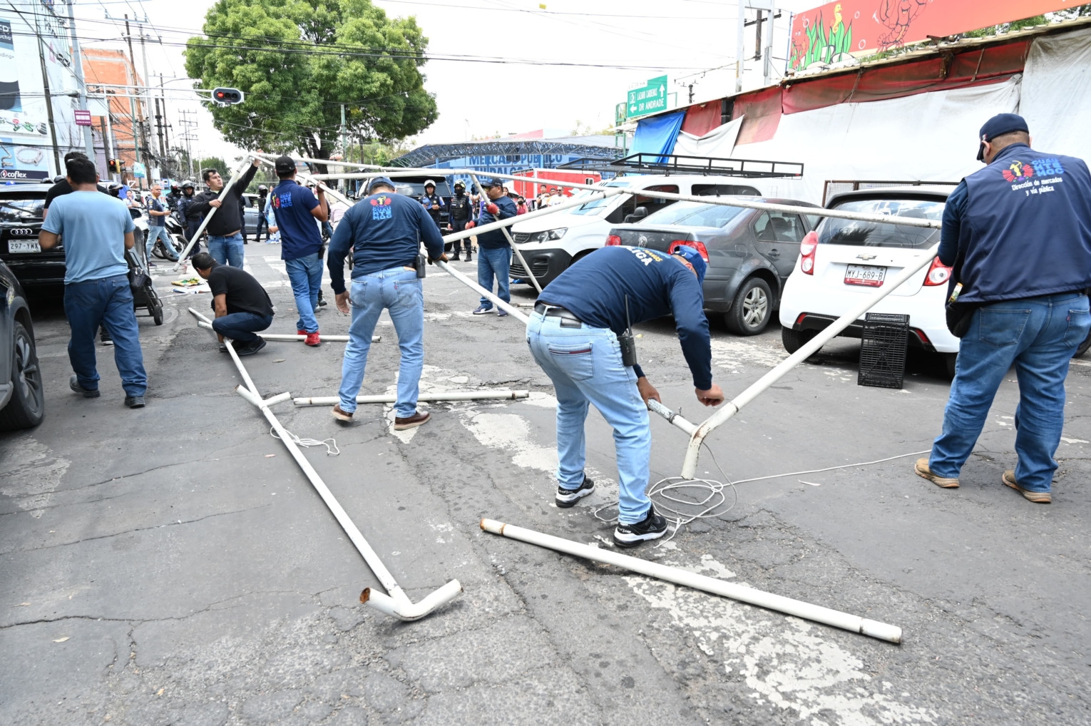 El operativo inició en la intersección de las calles Dr. Vértiz y Dr. Balmis, donde fue desmontado un puesto metálico y una estructura que funcionaban como bodegas para establecimientos comerciales. En ese mismo tramo se detectó una carpa colocada sobre la vía pública, la cual estaba rotulada como puesto de venta de alimentos y bajo su sombra se encontraban varios vehículos particulares estacionados; la estructura fue también retirada por ocupar cerca de 40 metros cuadrados del espacio común sin los permisos correspondientes.
