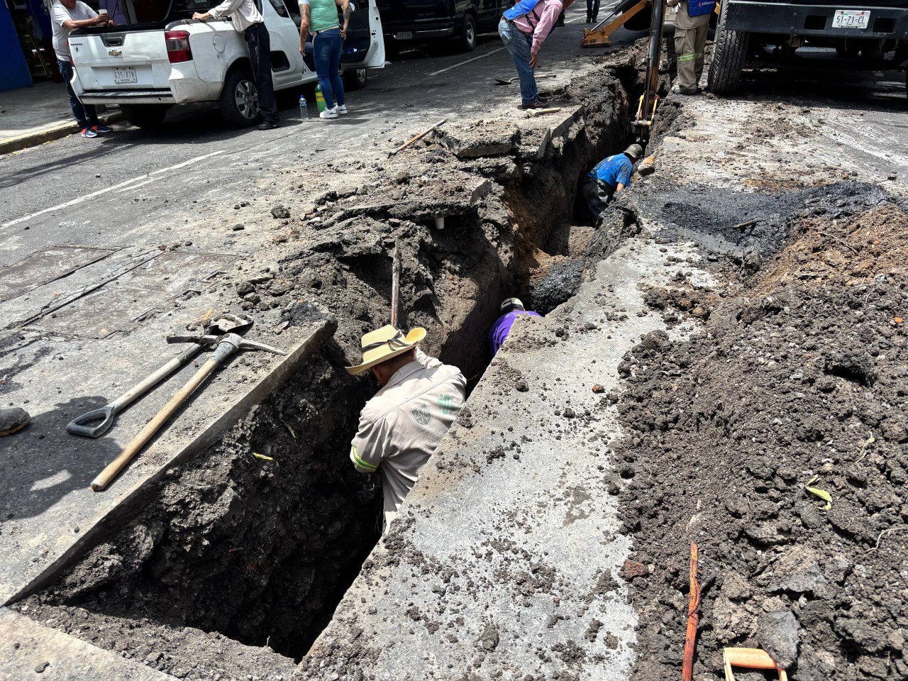 Al acudir al sitio y tras realizar la revisión del drenaje, el personal operativo identificó que la atarjea estaba colapsada, por lo que la única solución efectiva era el cambio total de la tubería, con lo que se pretende evitar futuras obstrucciones e inundaciones.