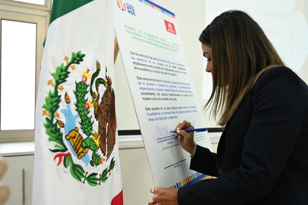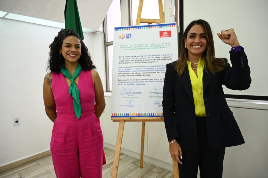 Psicólogas de la Universidad Iberoamericana se suman a la estrategia de atención a mujeres en situación de violencia de la alcaldesa Alessandra Rojo de la Vega en Cuauhtémoc, gracias a la firma de un convenio de colaboración entre el Gobierno local y la institución educativa.