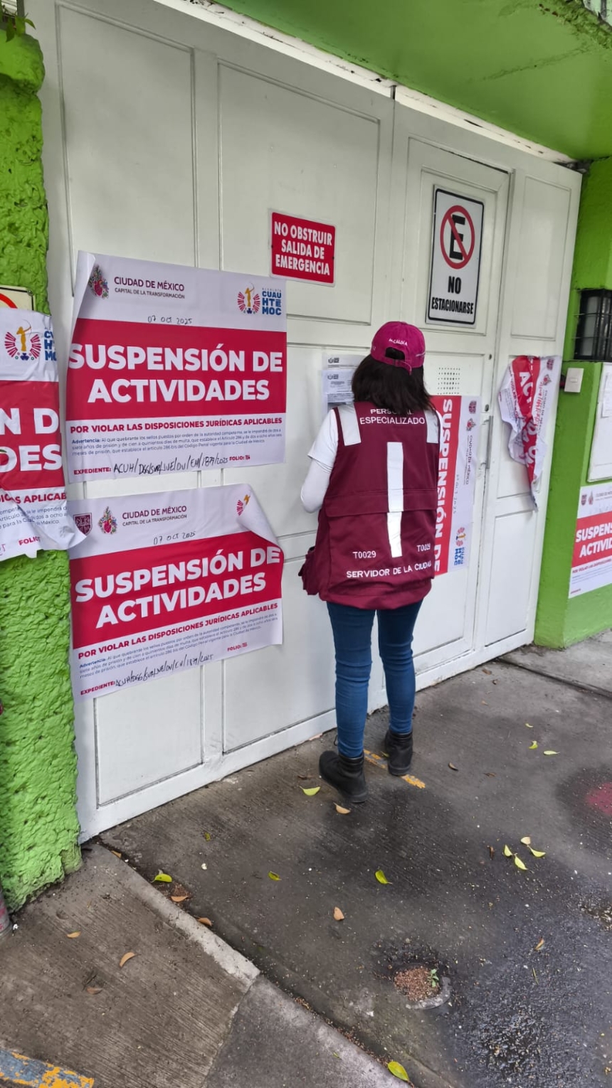 Tras el fallecimiento de un menor de 11 meses que se encontraba bajo el cuidado de un establecimiento con funciones de guardería en la colonia Cuauhtémoc, el Gobierno que encabeza la alcaldesa Alessandra Rojo de la Vega llevó a cabo —en coordinación con el Instituto de Verificación Administrativa (INVEA)— una visita de inspección que derivó en la suspensión de actividades del inmueble, al detectarse irregularidades en su operación y documentación.