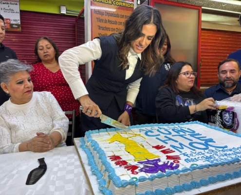 Entre música, pastel y muestras de cariño, la alcaldesa celebró junto a las y los comerciantes, a quienes agradeció por mantener viva la tradición de trabajo y solidaridad que caracteriza a Tepito.