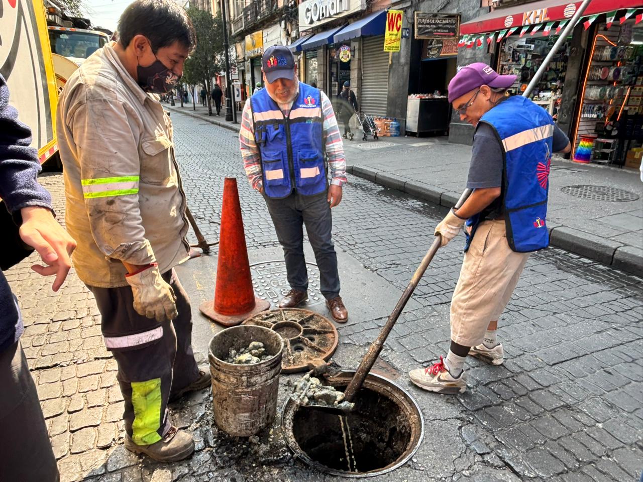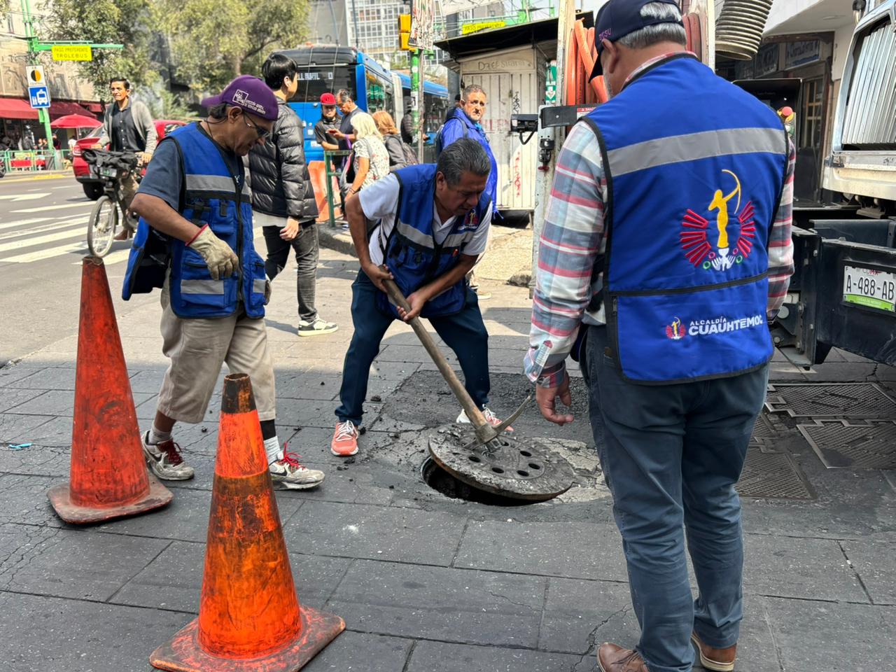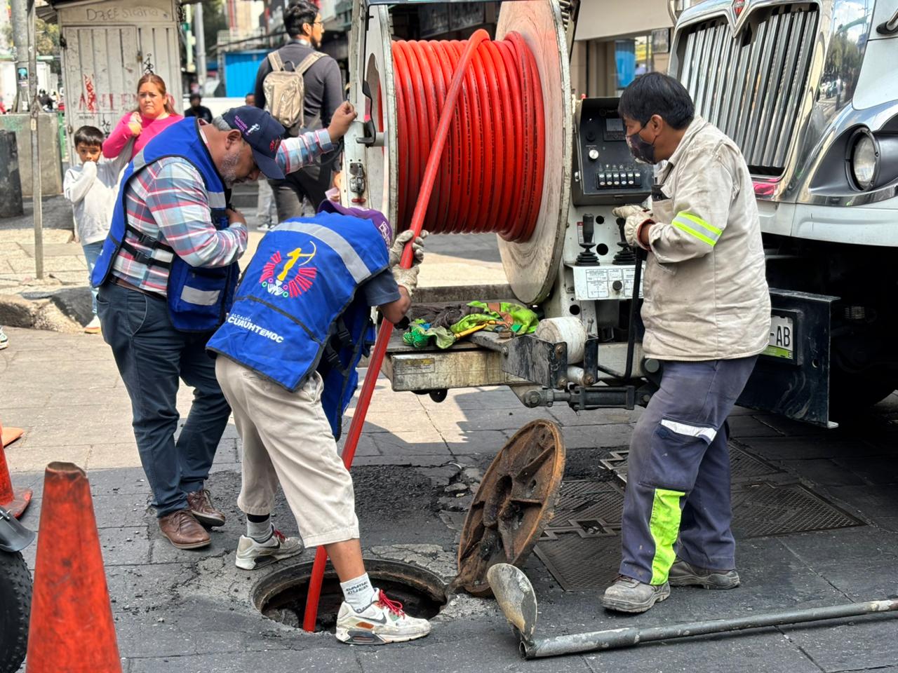 CON DESAZOLVE, PERSONAL DE LA ALCALDÍA CUAUHTÉMOC QUITA TAPONAMIENTOS OCASIONADOS POR EL DESECHO DE ACEITE EN COLADERAS