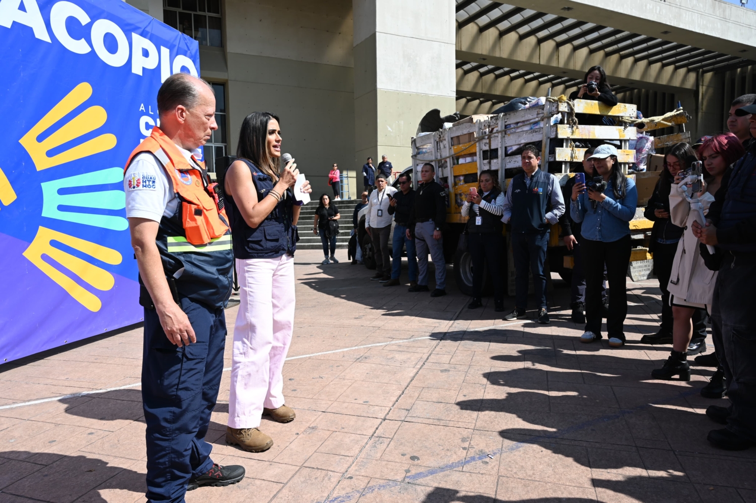 Durante su mensaje, la alcaldesa subrayó que la ayuda enviada desde Cuauhtémoc representa la solidaridad y empatía de miles de personas: