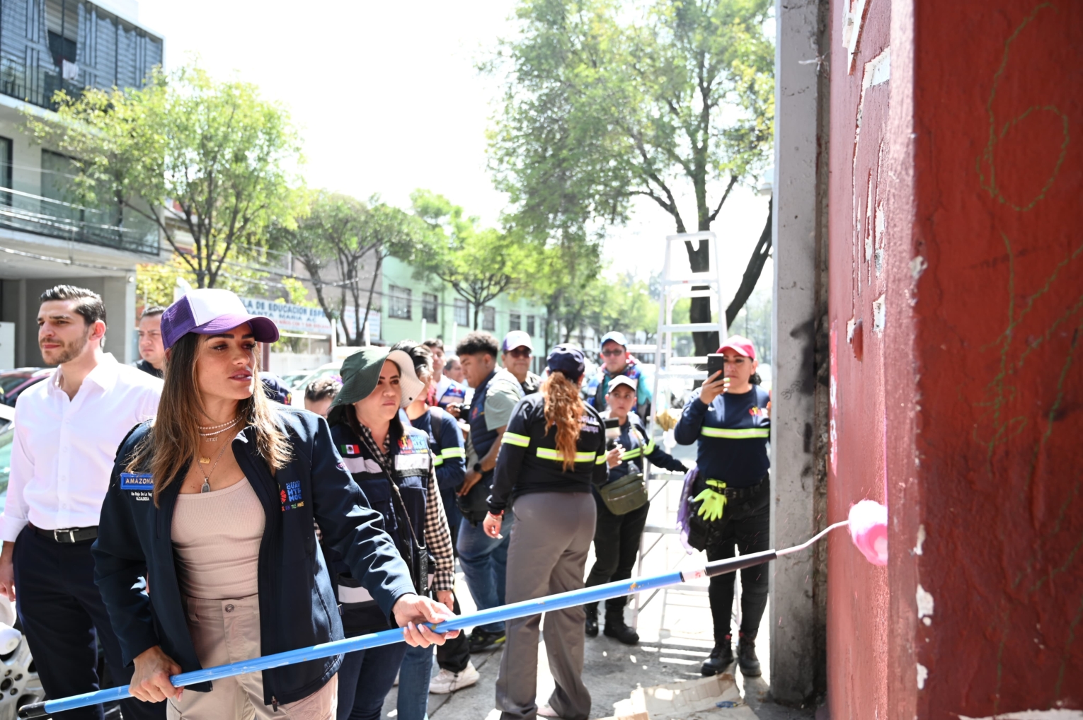 La alcaldesa Alessandra Rojo de la Vega encabezó la rehabilitación de tres fachadas en las colonias Santa María la Ribera y Morelos, como parte del programa “Píntale Cuauhtémoc”, con el que su gobierno busca recuperar el color, la seguridad y el sentido de comunidad en las distintas colonias y barrios de la demarcación.