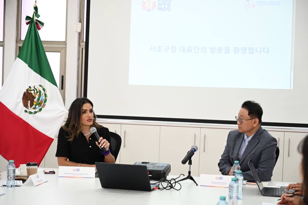 La alcaldesa Alessandra Rojo de la Vega recibió en la sede de la Alcaldía Cuauhtémoc a la delegación oficial del Distrito de Seocho, República de Corea, encabezada por su vicealcalde Young Jun Chung, quien acudió acompañado de Jin Suk Mun, jefe de la División de Gestión de Tránsito y Aparcamiento, y Seong Jin Lim, responsable de la División de Cultura y Turismo de la Embajada de Corea en México.