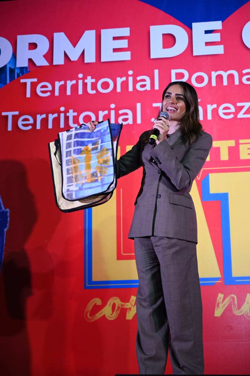 Como ejemplo de manejo responsable, informó que todo el material utilizado para la difusión exterior del Primer Informe de Gobierno será reutilizado para elaborar bolsas ecológicas, reafirmando el compromiso ambiental de su gestión.