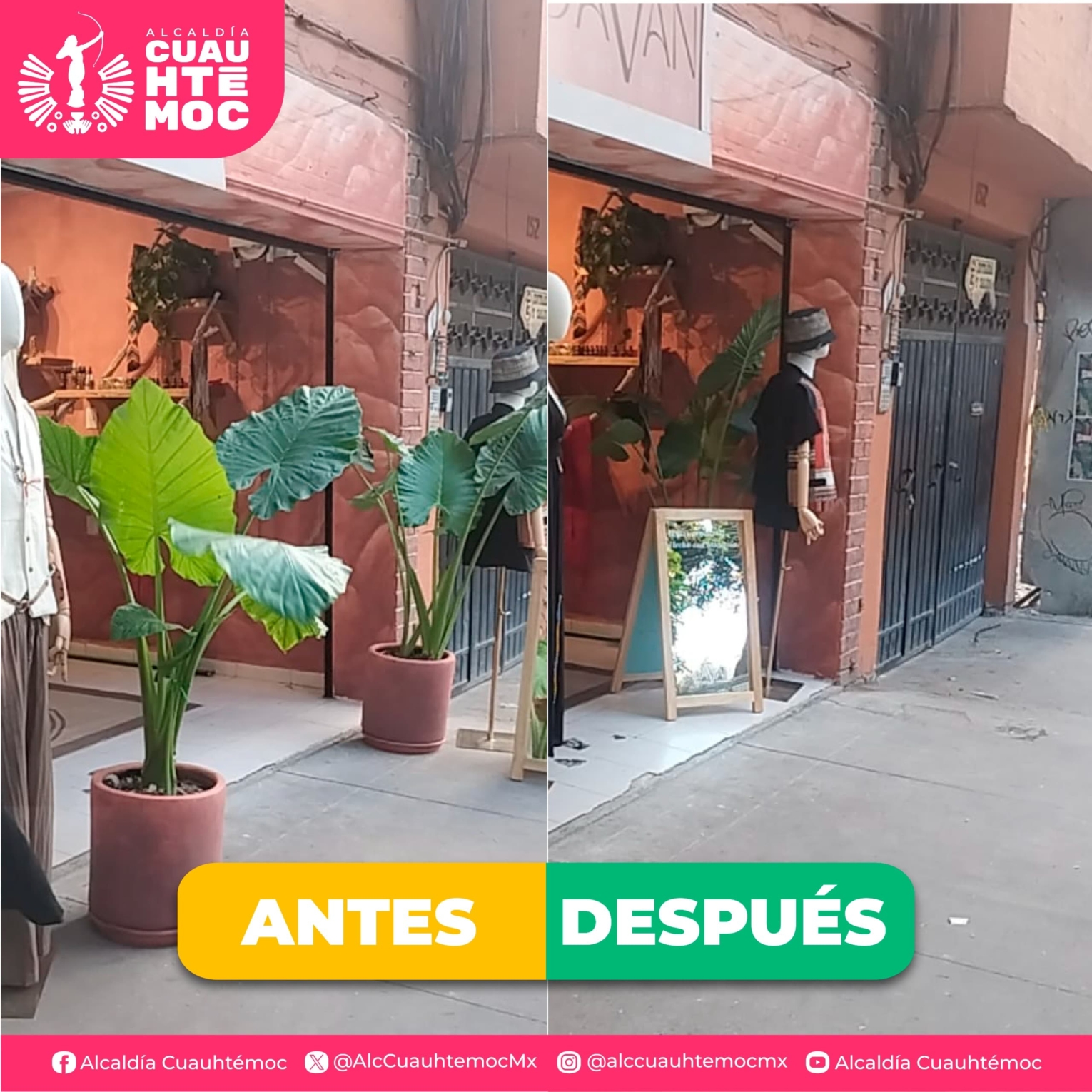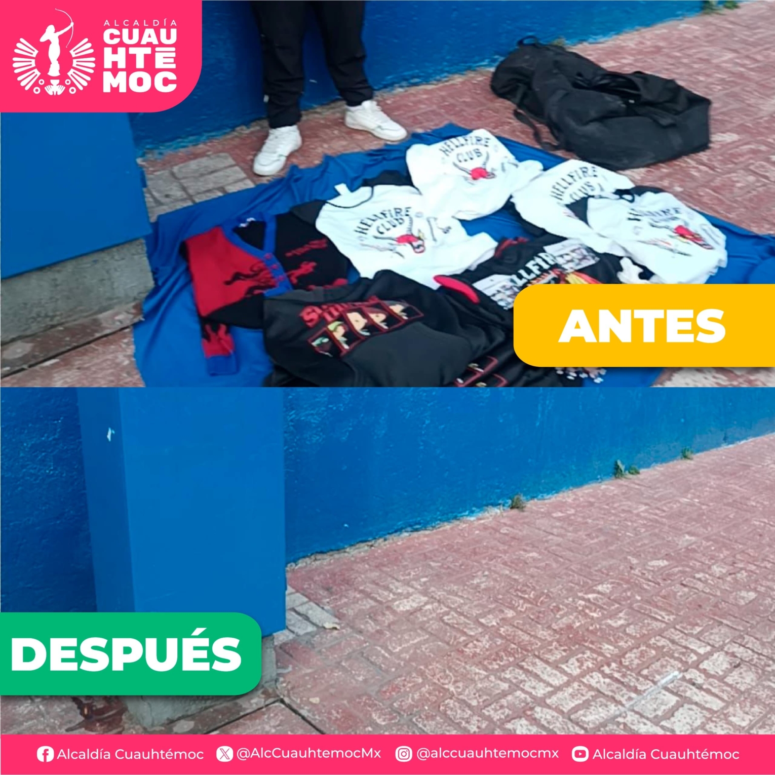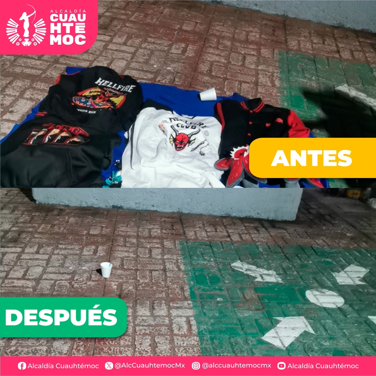 Como parte del compromiso de la alcaldesa Alessandra Rojo de la Vega con el orden, la seguridad y la mejora del entorno urbano, personal de la Alcaldía Cuauhtémoc llevó a cabo diversas acciones para la recuperación y el uso adecuado del espacio público con lo que se liberó aproximadamente 2 mil metros cuadrados de zonas públicas.