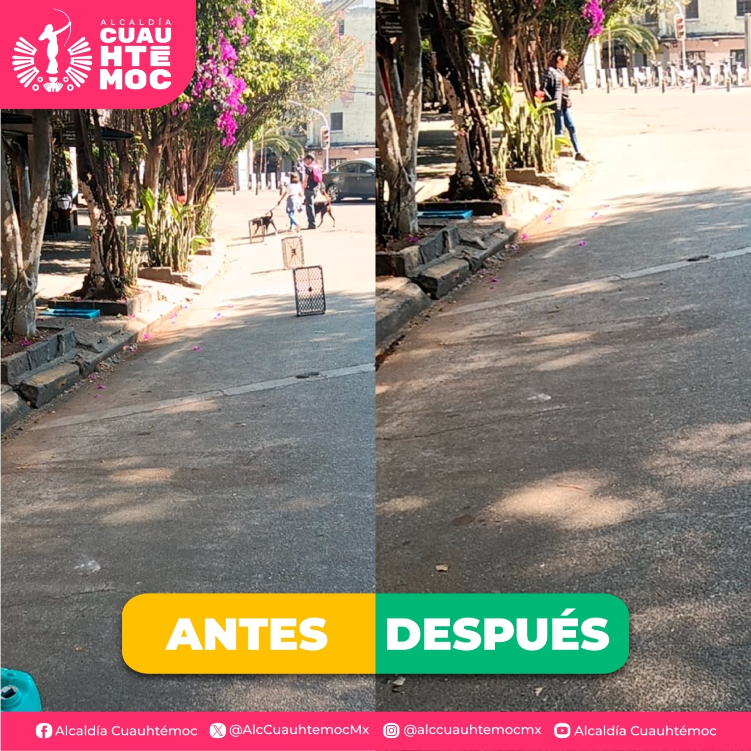 ALCALDÍA CUAUHTÉMOC LIBERA 2 MIL METROS CUADRADOS DE ESPACIO PÚBLICO; RETIRA MOSTRENCOS Y OBSTÁCULOS