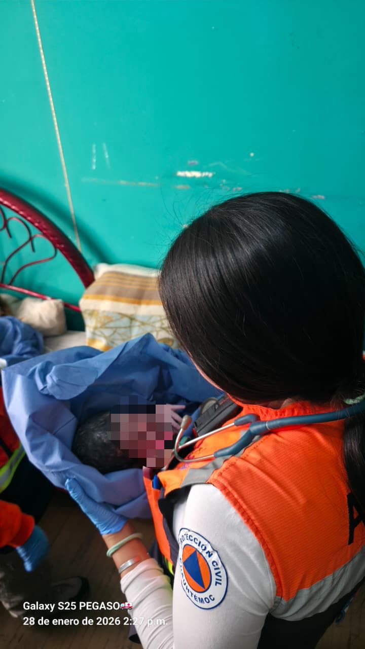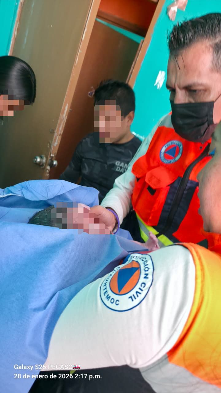 Personal de la Dirección de Gestión Integral de Riesgos y Protección Civil de la Alcaldía Cuauhtémoc atendió a una mujer tras dar a luz al interior de un domicilio ubicado en la calle Academia, esquina Corregidora, en la colonia Centro.