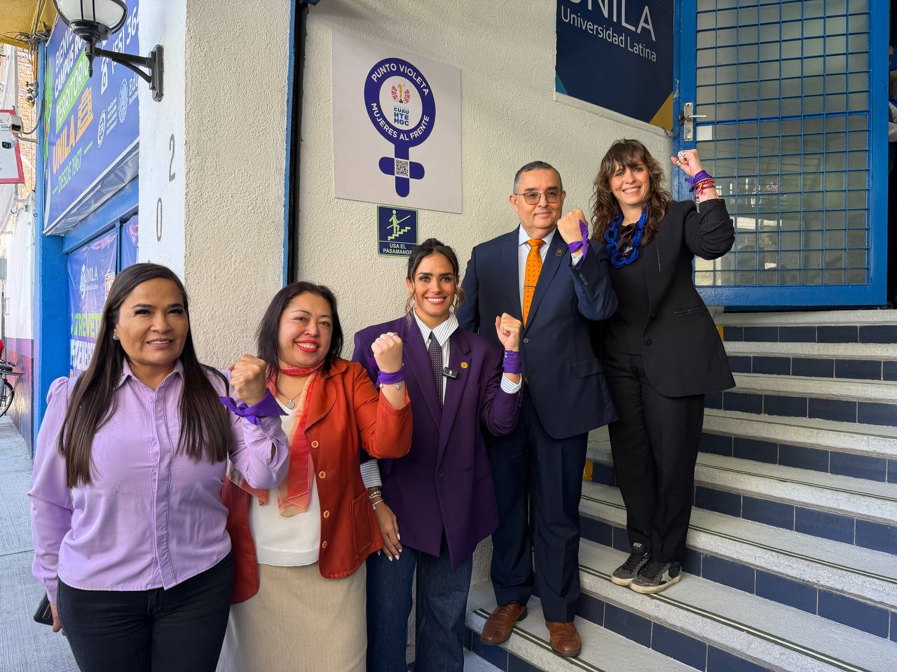Más tarde, se instaló un nuevo Punto Violeta en la Universidad Latina, campus Roma, donde se impartió una charla a estudiantes sobre violencia de género y activación de la estrategia Reacción Violeta.