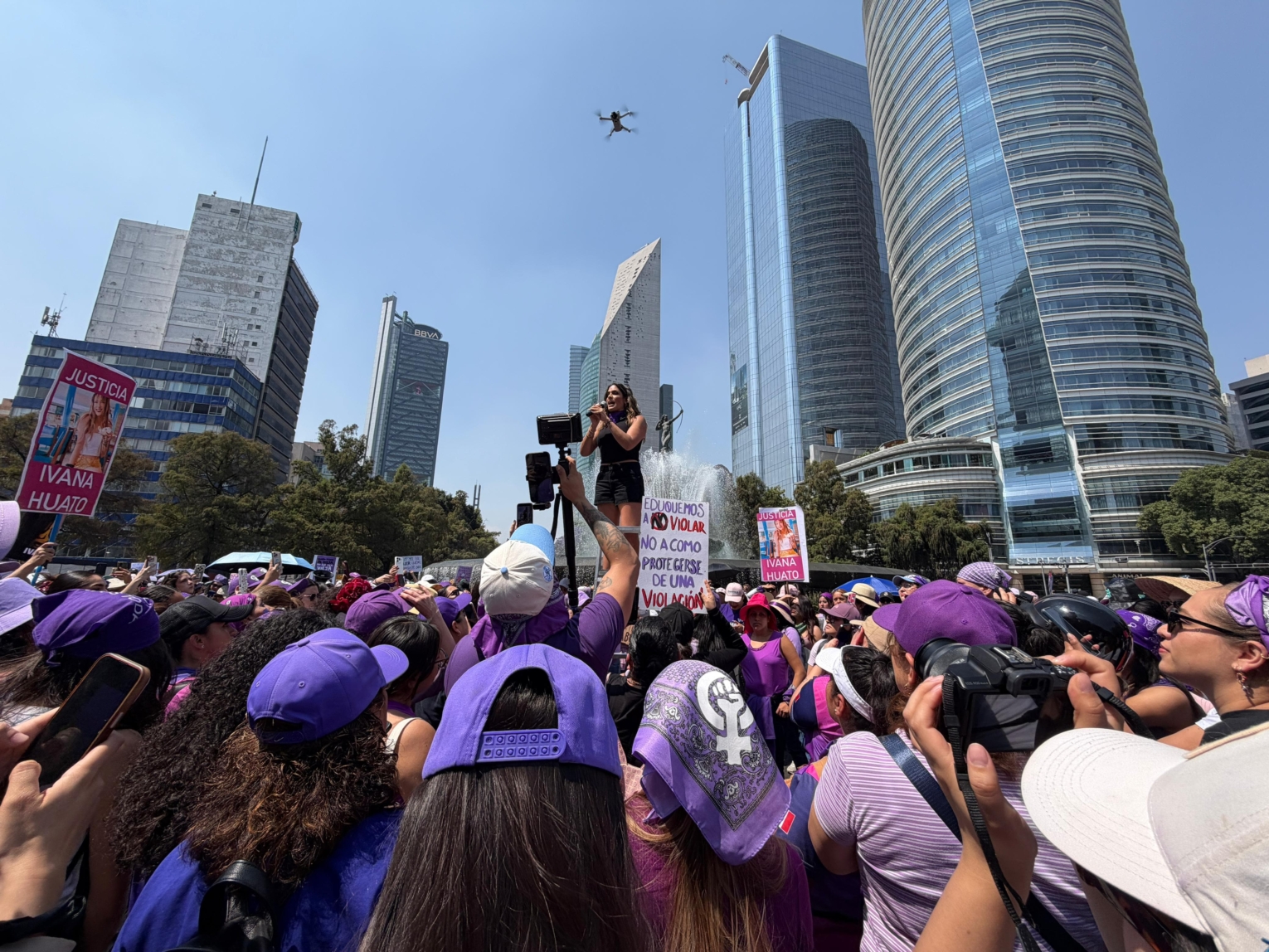 A lo largo de la jornada, la Cuauhtémoc instaló sanitarios móviles en puntos como Fuente de la Diana Cazadora y El Caballito, además de habilitar puntos de hidratación para las mujeres que participaron en la movilización.