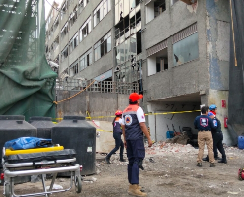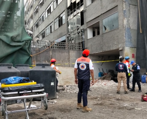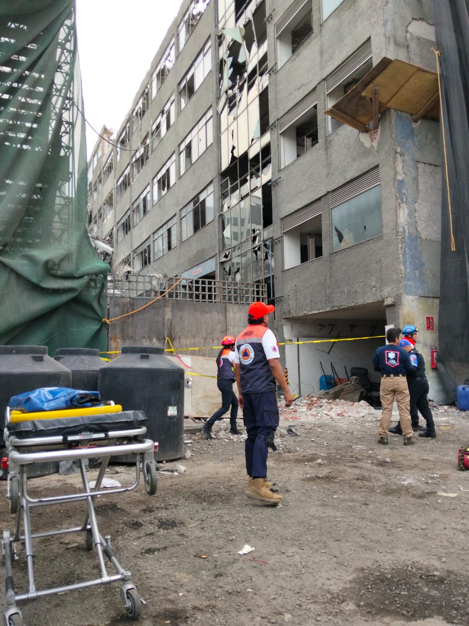 Elementos de la Dirección de Gestión Integral de Riesgos y Protección Civil de la Alcaldía Cuauhtémoc atendieron un incidente registrado en un edificio en proceso de demolición ubicado sobre Calzada San Antonio Abad, en la colonia Tránsito, donde se reportó un colapso no controlado.