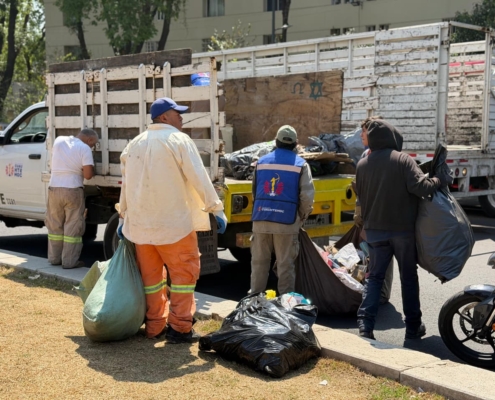 De manera paralela, se retiraron más de 60 toneladas de residuos sólidos y enseres acumulados en la vía pública, entre ellos muebles, cobijas, ropa, lonas y objetos diversos que ocupaban banquetas y camellones. También se localizaron materiales inflamables y objetos punzocortantes, lo que representaba un riesgo adicional para quienes habitan y transitan por la zona.