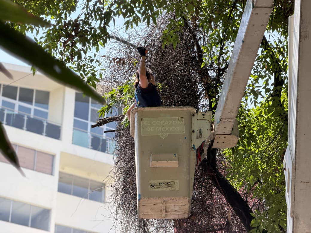 Un árbol seco, con ramas densas y sin mantenimiento, impedía la entrada de luz natural a varios domicilios y generaba poca visibilidad durante la noche en la calle Tamaulipas, entre Campeche y Mexicali, en la colonia Hipódromo. La situación fue atendida personalmente por la alcaldesa Alessandra Rojo de la Vega, quien, bajo supervisión de personal especializado, participó en la poda del ejemplar, uno de los cerca de 40 atendidos como parte de una megajornada en las colonias Hipódromo, Condesa y Roma.