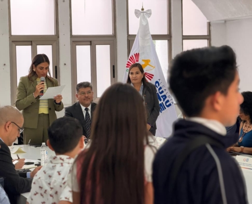 Al encabezar la sesión, la alcaldesa subrayó la importancia de colocar a la niñez en el centro de las decisiones públicas y de construir soluciones a partir de lo que viven todos los días en sus comunidades.